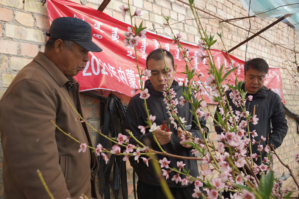 在賽烏素嘎查,二連浩特市農(nóng)牧局專家邢海軍走進果園,現(xiàn)場為果樹剪枝,一邊修剪一邊講解修剪果樹的原則和方法。種植戶圍著果樹認真觀看并記錄,不時地向?qū)<姨釂枺€親自上前實踐剪枝。邢海軍還向他們講解了春季果園病蟲害防治知識。大家紛紛表示受益匪淺,專家的技術(shù)指導非常及時,一定按照專家的講解,重新把自家果樹修剪一遍,提高果品質(zhì)量。