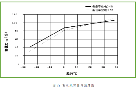 蓄電池容量與環(huán)境溫度的對(duì)比關(guān)系:環(huán)境溫度25℃,蓄電池放出容量100%;環(huán)境溫度0℃,蓄電池放出容量90%;環(huán)境溫度-10℃ ,蓄電池放出容量70%;環(huán)境溫度-20 ℃ ,蓄電池放出容量50%。