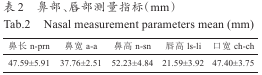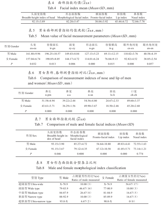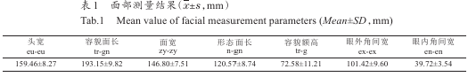2.1內(nèi)蒙古地區(qū)蒙古族青年大學生面部特征測量結(jié)果