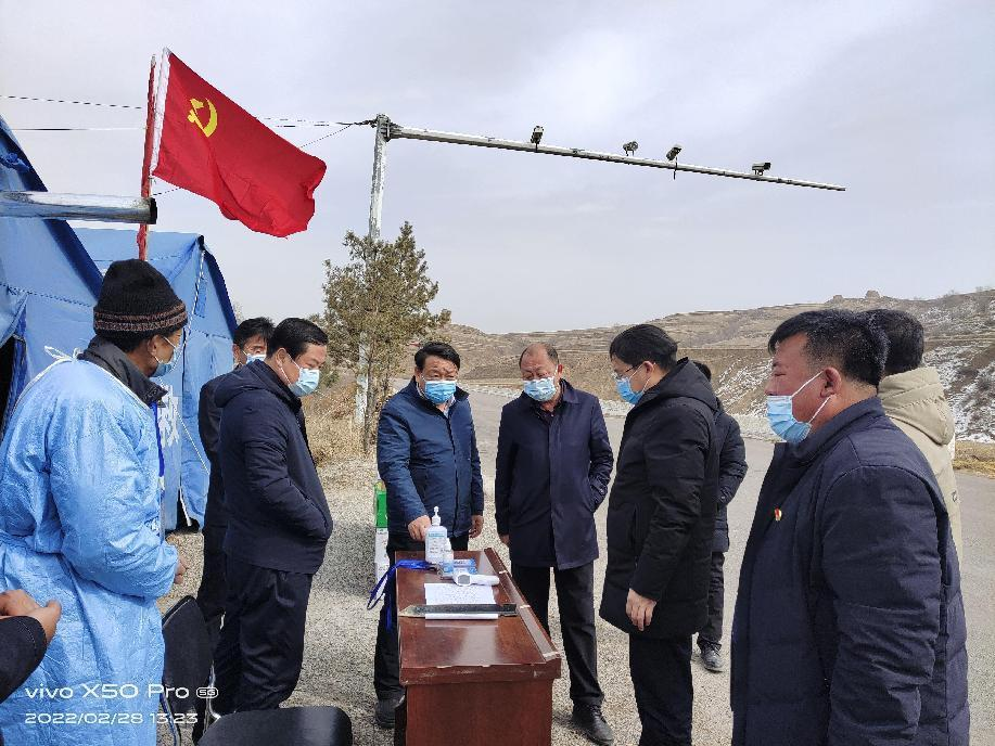 清水河縣北堡鄉(xiāng)碓臼坪村支書劉榮(右一)在核酸檢測(cè)點(diǎn)