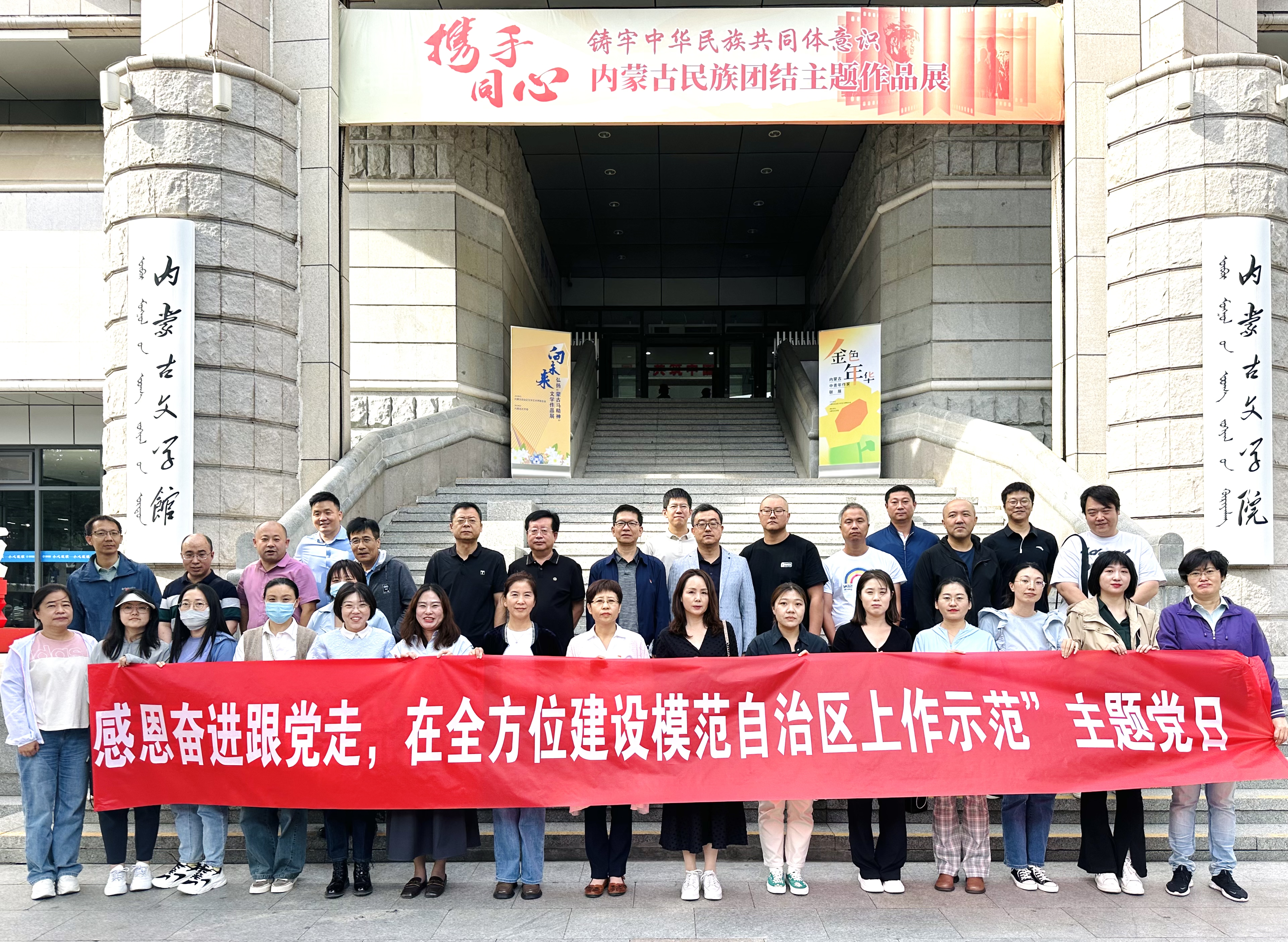 為深入學(xué)習(xí)習(xí)近平新時代中國特色社會主義思想,貫徹落實習(xí)近平總書記關(guān)于加強(qiáng)和改進(jìn)民族工作的重要思想,開展好鑄牢中華民族共同體意識宣傳教育,9月20日,內(nèi)蒙古科協(xié)組織機(jī)關(guān)、事業(yè)單位全體黨員干部赴內(nèi)蒙古文學(xué)館開展“感恩奮進(jìn)跟黨走,在全方位建設(shè)模范自治區(qū)上作示范”主題黨日活動,參觀民族團(tuán)結(jié)主題展覽。