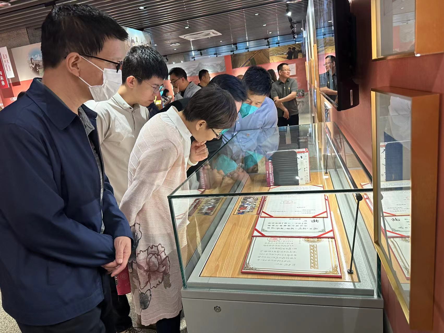黨員們跟隨講解員的腳步,認(rèn)真聆聽、不時駐足觀看交流。一張張手稿印記、一幅幅歷史照片、一部部壯美詩篇,使黨員干部們深受教育和啟發(fā),深切感受到內(nèi)蒙古廣大文學(xué)工作者對美好生活的深沉熱愛,深入了解了內(nèi)蒙古各族人民團(tuán)結(jié)奮進(jìn)的壯麗史詩。
