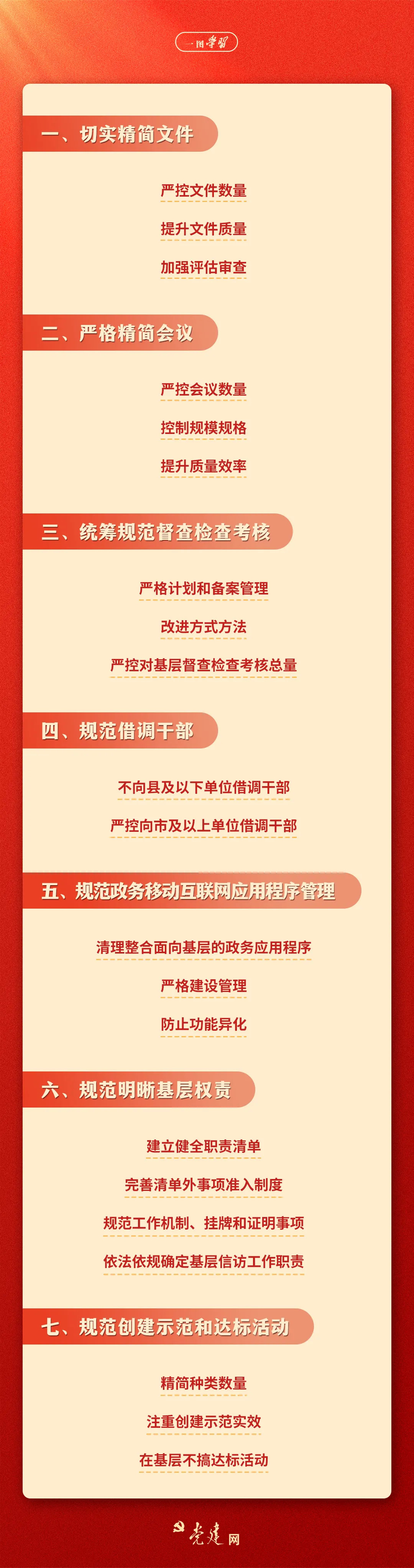 中共中央辦公廳、國務(wù)院辦公廳印發(fā)《整治形式主義為基層減負(fù)若干規(guī)定》(以下簡(jiǎn)稱《若干規(guī)定》),并發(fā)出通知,要求各地區(qū)各部門認(rèn)真遵照?qǐng)?zhí)行,統(tǒng)籌為基層減負(fù)和賦能,切實(shí)把基層從形式主義、官僚主義束縛中解脫出來,引導(dǎo)廣大黨員、干部積極擔(dān)當(dāng)作為,有更多精力抓落實(shí)?!度舾梢?guī)定》都有哪些明確要求?快來一圖學(xué)習(xí)!